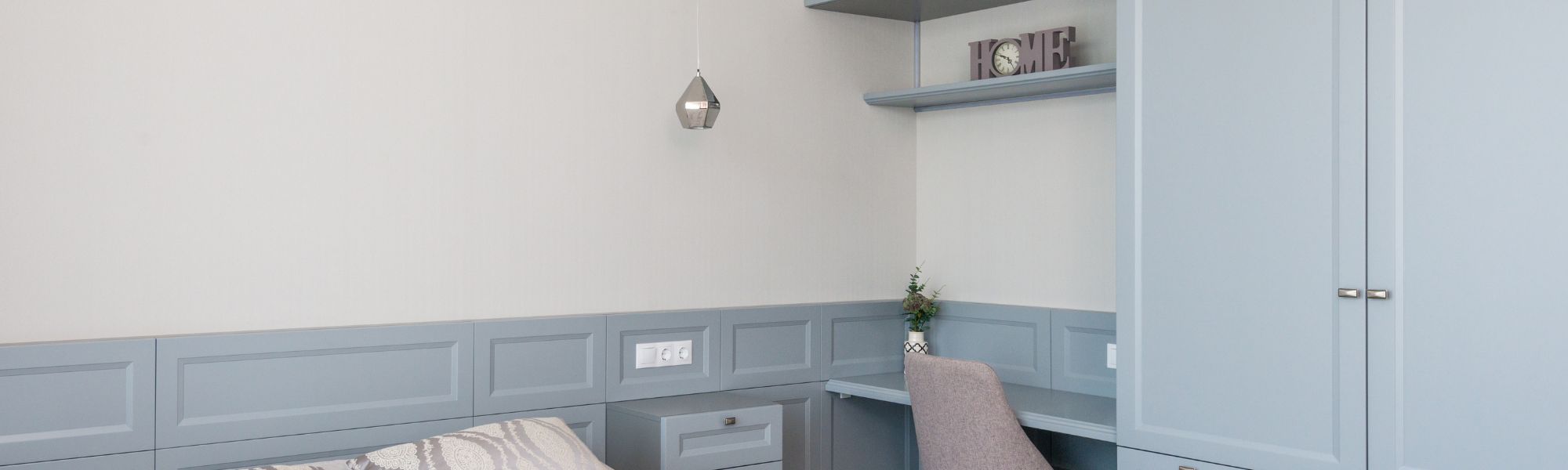 Inbuilt custom cabinets can help keep areas tidy with integrated storage features and provide clever workspaces. We work with angled ceilings, around doorways and into small nooks to help you make the most of the existing features in your room and maximise your space. Bespoke fitted storage solutions can work in offices, dining rooms or lounge spaces and are handmade and handfitted.