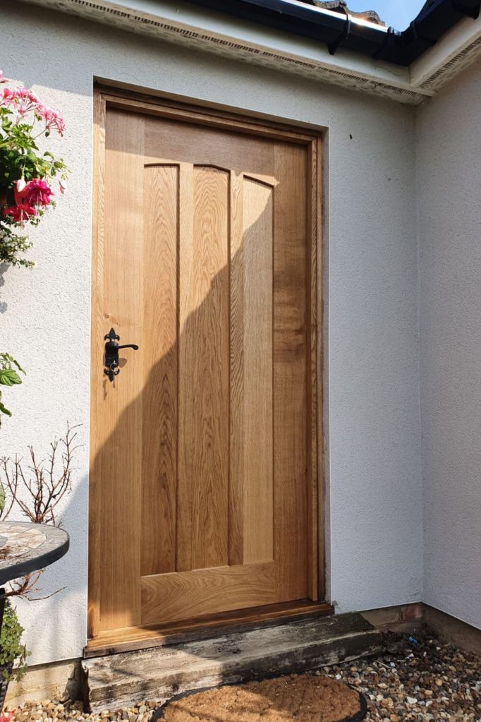 This project was a joint collaboration with a former furniture school student James (Black Bear Bespoke Furniture) for a client in Mersea Island, Essex. A brief and design were provided for an exterior-grade European oak front door. Hand delivered to James for installation, these Gothic-inspired doors give a warm welcome to anyone visiting.